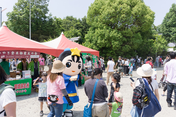 13時からは再び登場のご当地アイドル スマイルジェネレーションと熊本のお米のキャラクター「森のくまさん」そして、枚方市産業振興キャラクター ひこぼしくんが登場!
