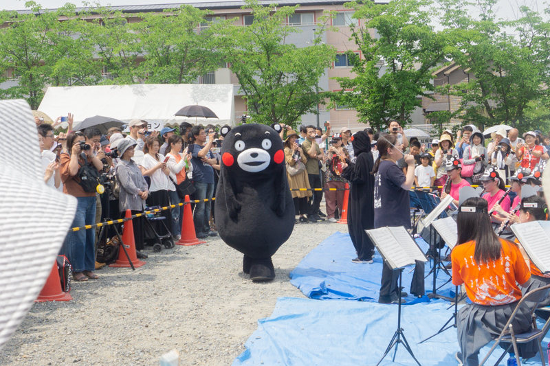 くまモンのお面をかぶって、スザンヌが歌っていた「ダイスキ!くまもとファイヤー」を、みんなで演奏♪