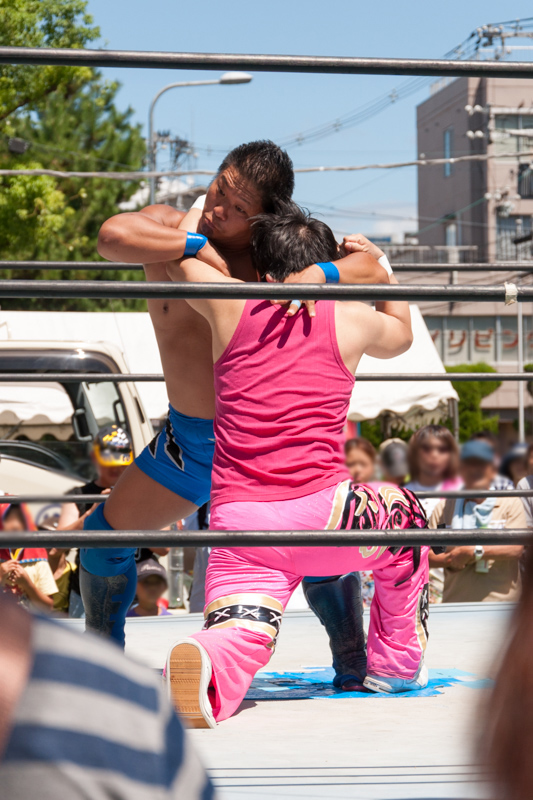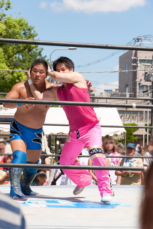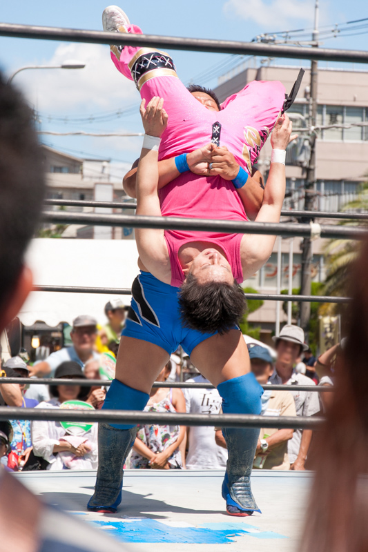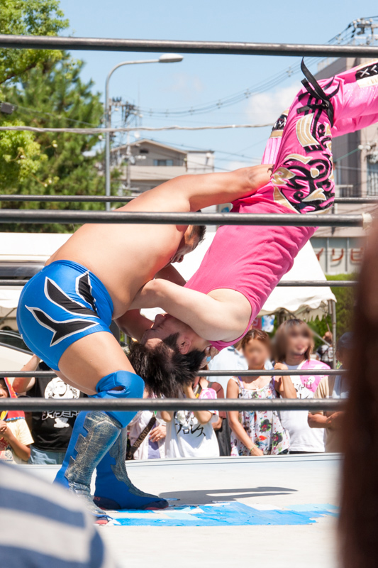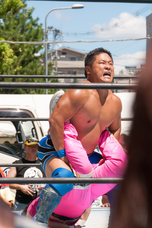 ゴツい青い方が安藤選手、ピンクの方が普段は社労士さん(おもろすぎます)のユタカ選手の対決。