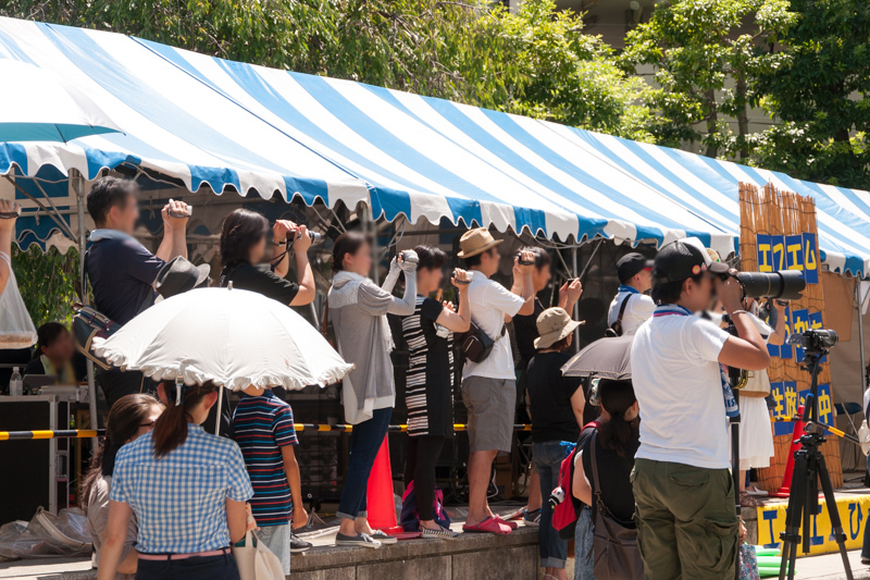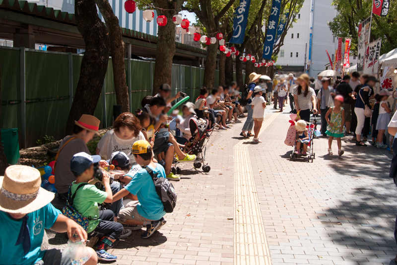 とにかく暑かったので日陰を中心に日傘や帽子、タオルなどで熱中症予防されている方が多かったです。