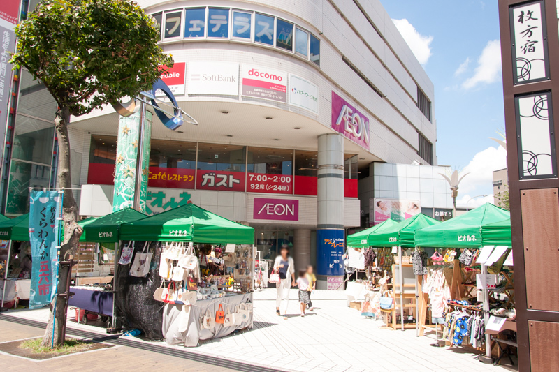 ここでは、ステージと枚方宿くらわんか五六市が行われていました。五六市はふだん毎月第2日曜日の開催ですが、8月は枚方まつりと同日開催ということで小さめの規模で開催されています。