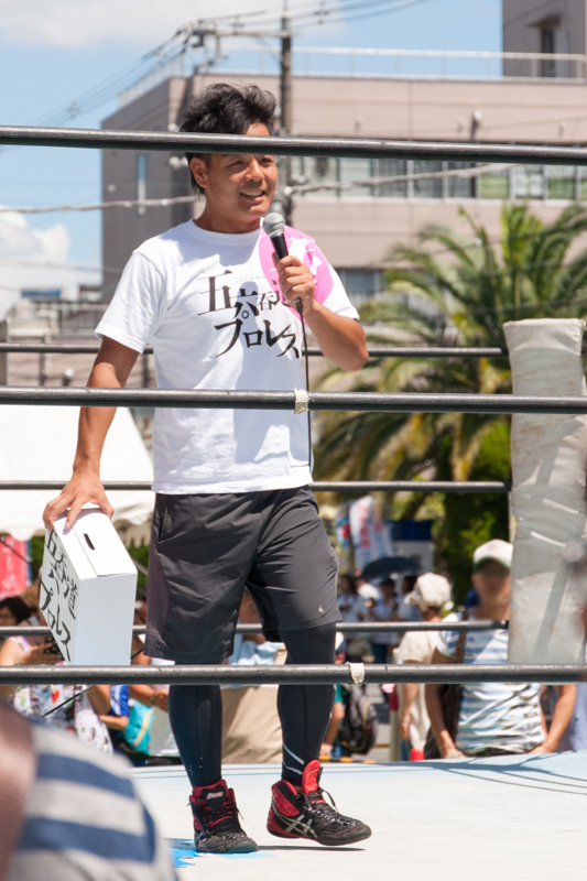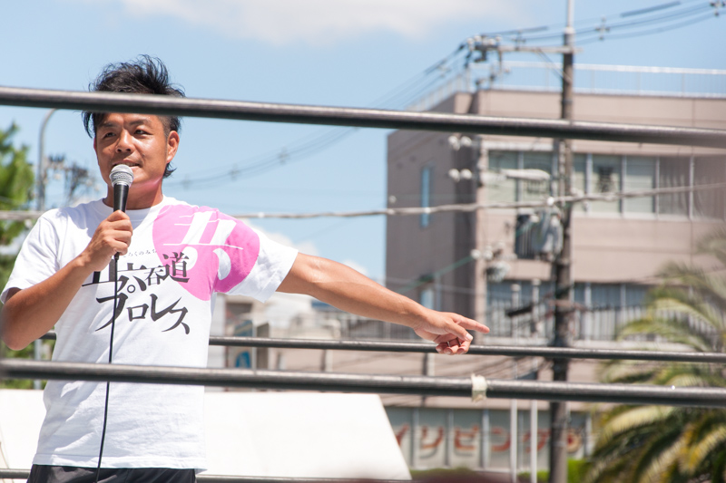 すると、枚方のプロレスラー田中祐樹さんがリングに登場!