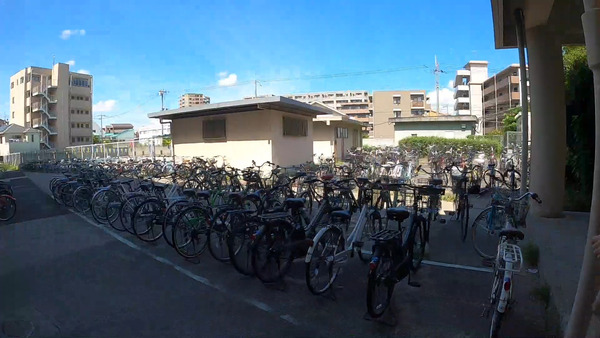駐輪場&プールエリアにやってきました。みんな懐かしい〜!ってなってくれるかと思いまして。ならなかったらすみません。