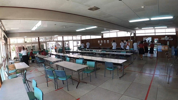 購入したアイスは教室内で食べないといけないということで、懐かしい机と椅子に座りながら、上記写真のとおり工夫された感じでアイスをいただきます。なんとなく教室でアイス食べるって背徳感。