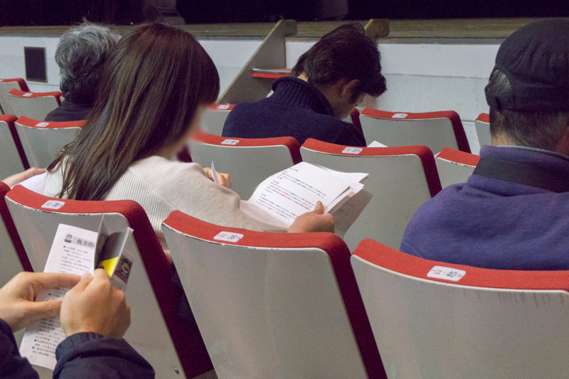 ひらかたQuizグランプリ実行委員会が事前に無料で配布した「虎の巻」や、独自に作ったレジュメなどで参加者の皆さんは最後の復習をし、本番に備えます。
