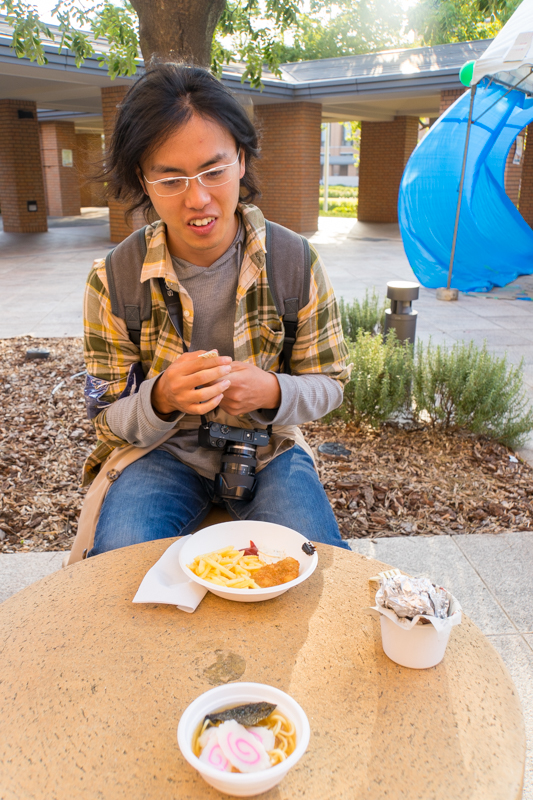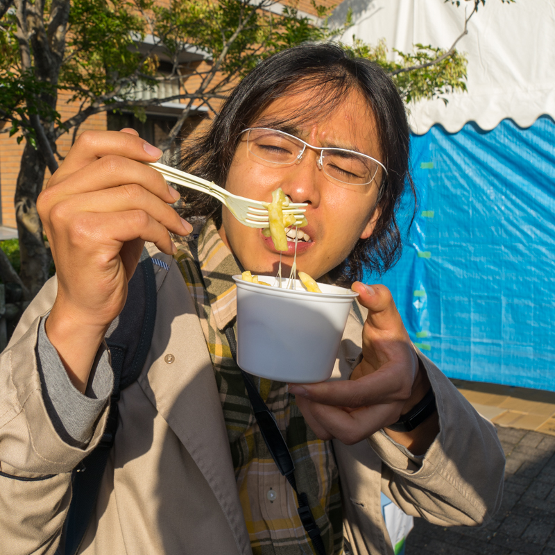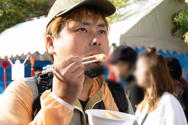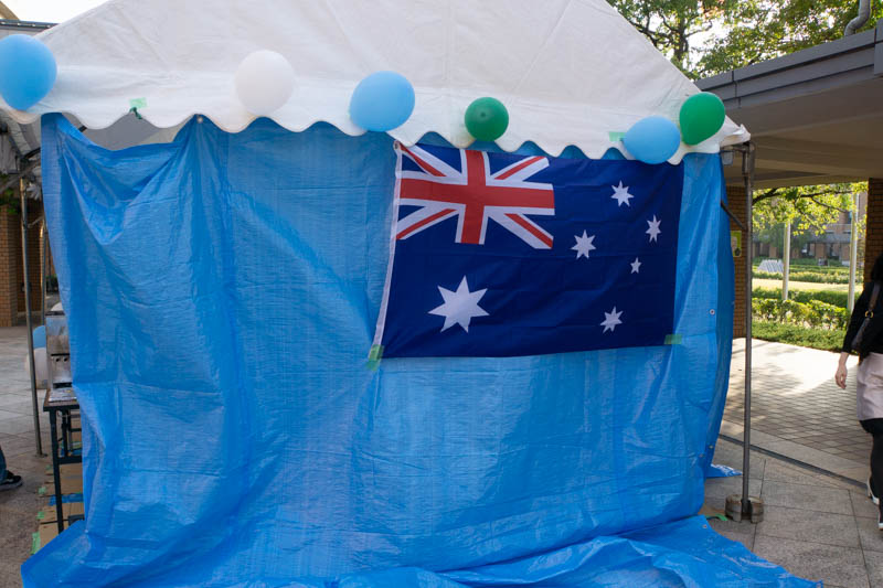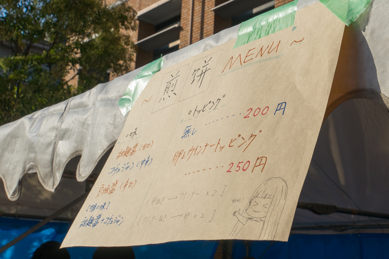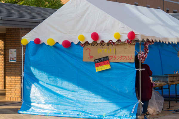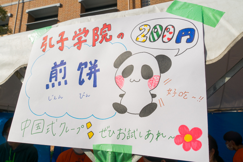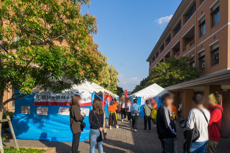 関西外大に留学しにきている世界各国の学生たちによる、インターナショナルでグローバルでワールドワイドな屋台グルメがいっぱいの、外大祭の1エリアです。一昨日のハロウィンの時にイベントについて伺いまして、行こうと決断したかたち。