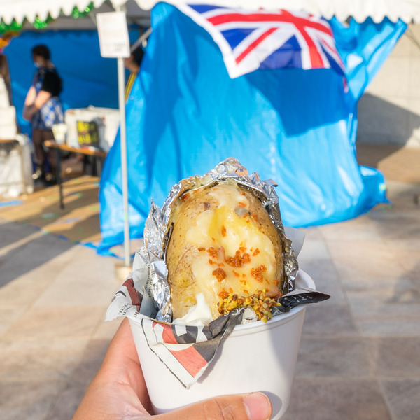 でっかいホカホカのじゃがいも1つにベーコンビッツにチーズが入っていまして、購入したらハリー・ポッター風の外国人女性から魔法をかけるそぶりまでしてくれて、それでいて美味しい。最高やないかい。マストバイ。