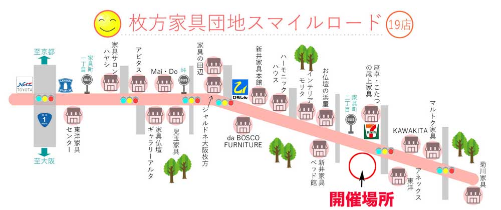 今回のイベントは、新施設オープンに向けて、家具団地エリアを盛り上げていこう!という目的で始まるイベントです![]()