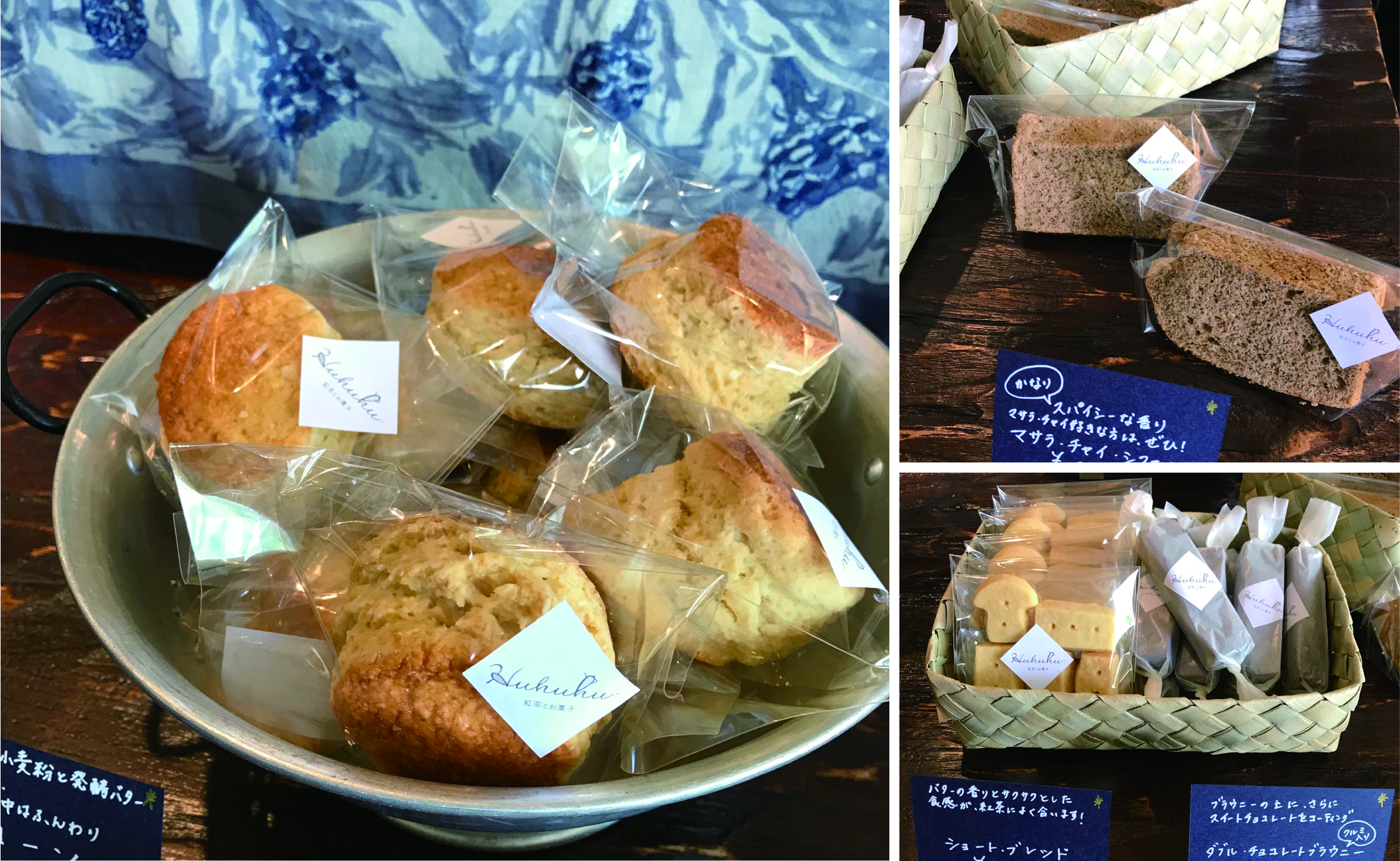 国産小麦粉、よつ葉バターなどこだわりの材料を使って、素材の風味を大切に焼き菓子を作っています。