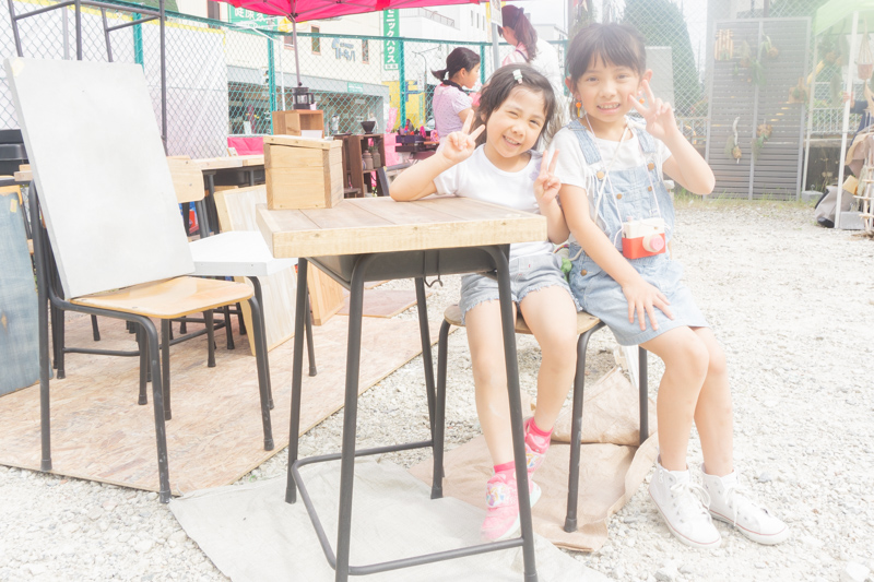 学校に置いてそうなちょっとレトロな机、椅子は子どもたちも興味津々〜。