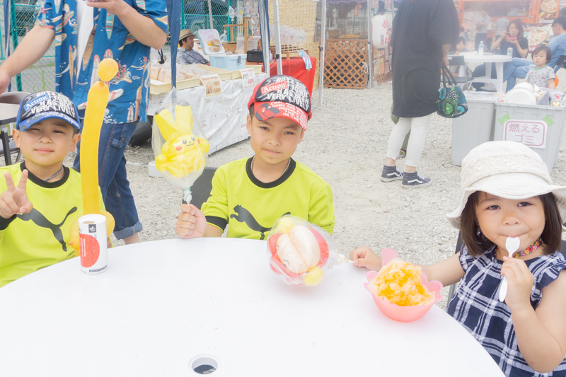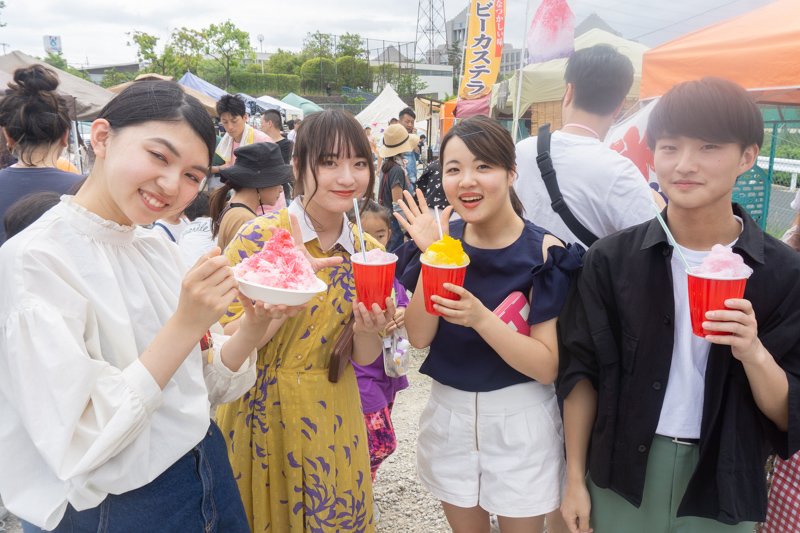 こちらは後ほどご紹介するステージの出演者さん。かき氷片手に楽しんでいました![]()