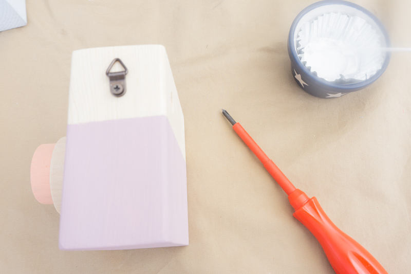 パーツを付け終わったら、両サイドの側面に金具を付けます。