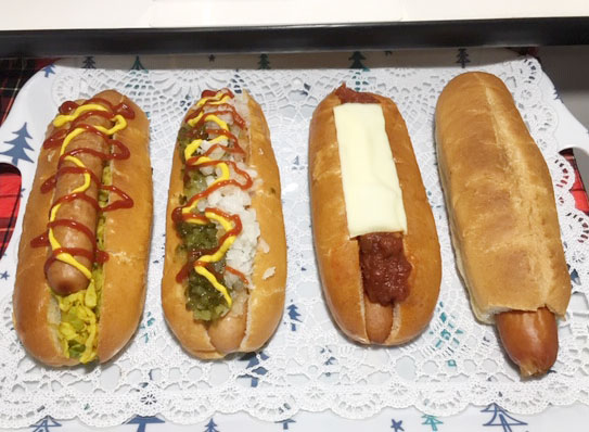 懐かしいカレーキャベツドッグ、新しさのソーセージドッグに、オニオンピクルスドッグとチーズサルサドッグの4種類よりお選びください。