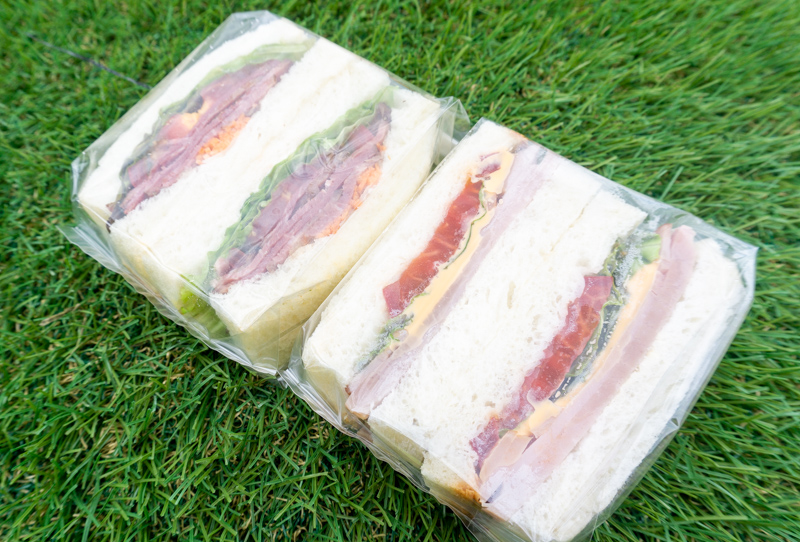 ローストビーフサンド(左)と厚切りハムチーズサンド(右)