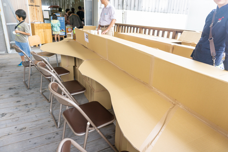 こちらもダンボール製のキッチンカウンターで休憩したりしながら‥‥‥