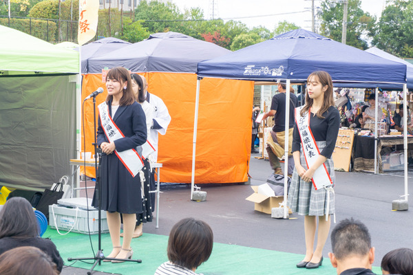 芝生エリア前にあるステージでは歌にバルーンに福娘!