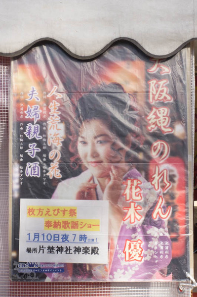 枚方えびす祭では明日1月10日、19時より花木優さんによる奉納歌謡ショーも行われる模様。