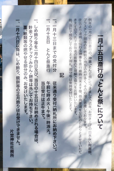 また、15日にはとんど祭も開催されまして、その注意点などが記載された看板が。