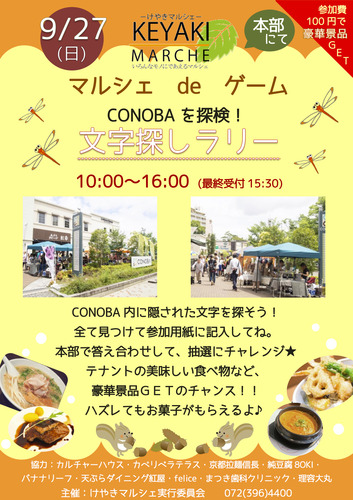 秋になって、今月は3ヶ月ぶりに昼間のけやきマルシェが帰ってきます![]()