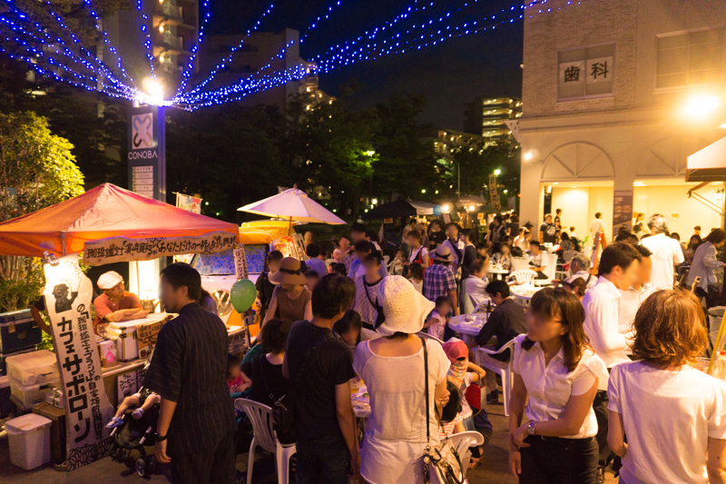 こちらは夜市(7・8月)の写真。現場調理品が集まるフードテラス周辺はいつも賑わっています。