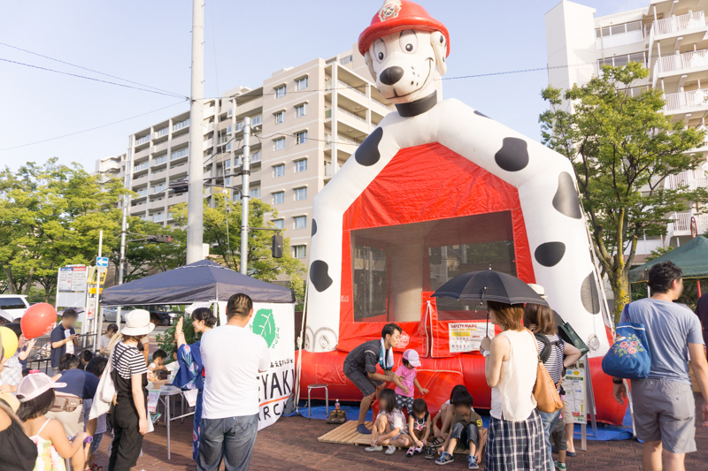 こども広場のすぐそばに、お店が並びます。お母さんはお買い物、こども達はゲーム、という遊び方が出来ちゃうのがけやきマルシェ。