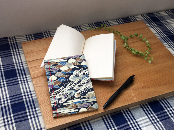 数種類の中からお好みの友禅和紙を選び、自分だけの和綴じノートを作ります。かわいい豆本などの販売も行います。