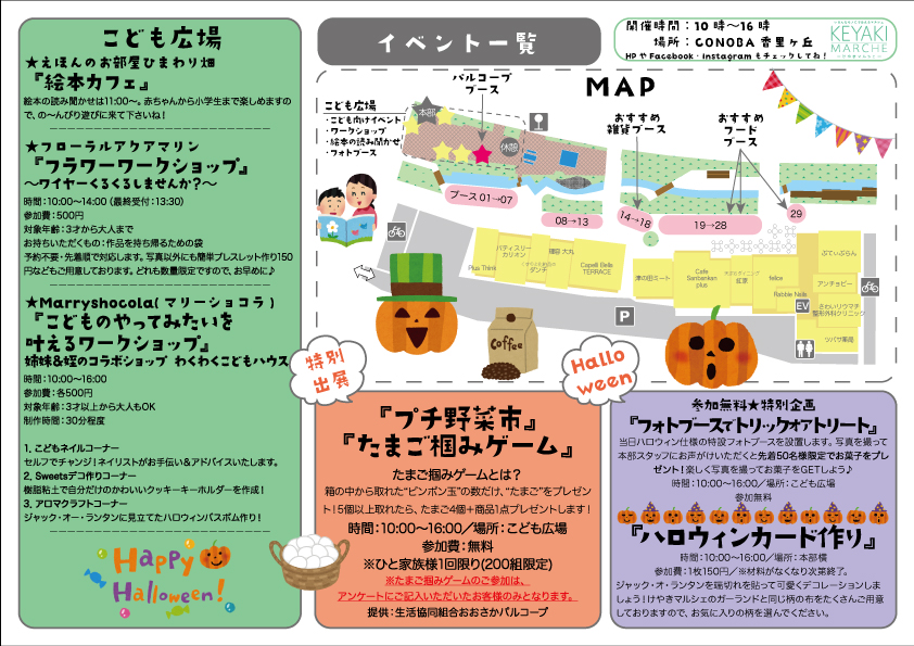 10月のけやきマルシェでは、気軽にハロウィンを楽しめる雑貨やワークショップが登場!