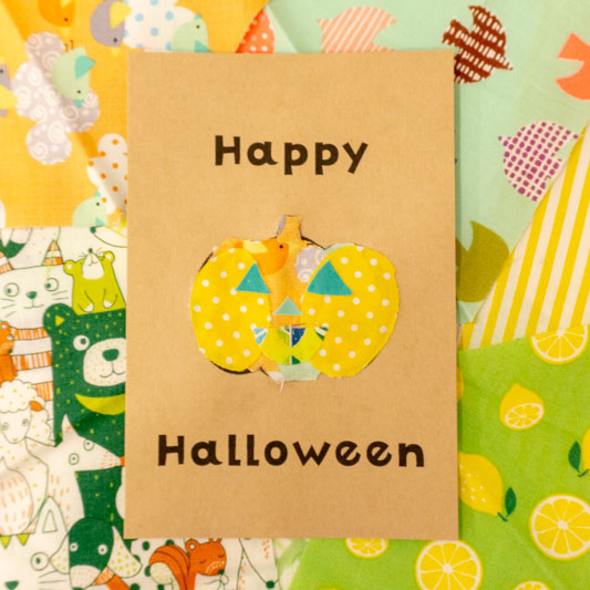 ジャック・オ・ランタンを端切れを貼って可愛くデコレーションしましょう![]()