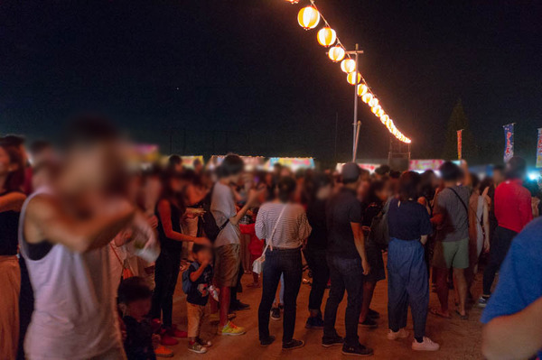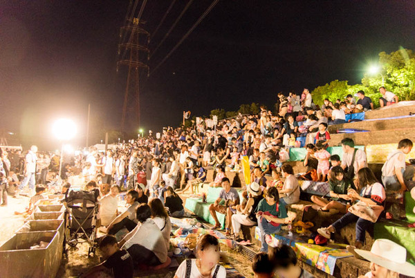 この日は19時頃にお祭りの会場に入ったのですが、入口近くにある階段はすでに人で埋まっていました。