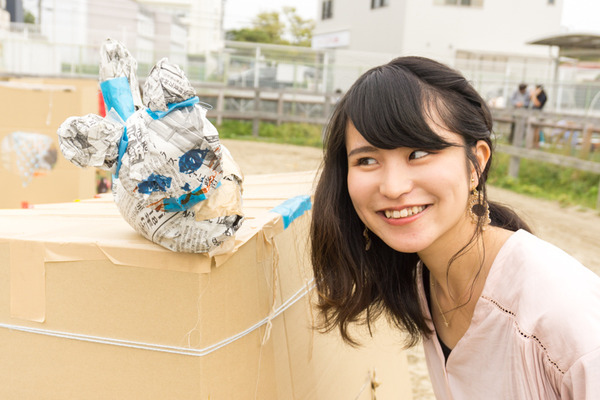 広いうま舎を活用して、子ども達がリサイクルのダンボールや紙袋で「家」を、そしてそれが集まって「村」を作って行きます!(参加は1回700円)