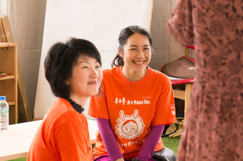 そして、甲田さんと同じ「AsMama」のオレンジTシャツを着たスタッフは、ママサポーターの皆さんです。みなさん現役子育てママです!