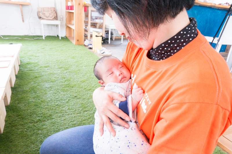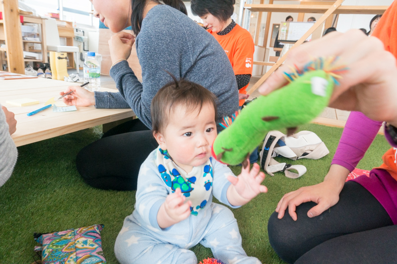 ママと一緒に参加している赤ちゃんは、ママサポーターが見てくれます。