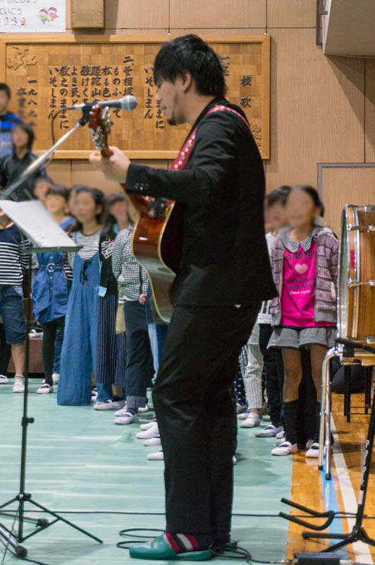 そして質問が終わると、続いては「こころ」を5・6年生と真戸原直人さんが一緒に歌う時間に。