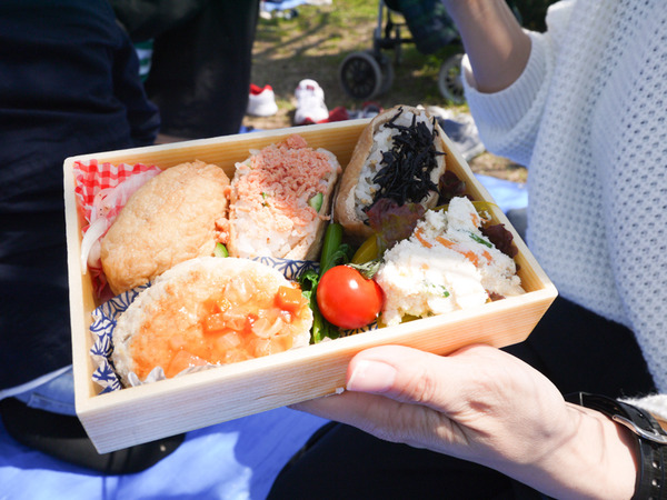 一緒にきてくれた、ふろ@ひらつーがおいなりさん弁当をお買上げ♪