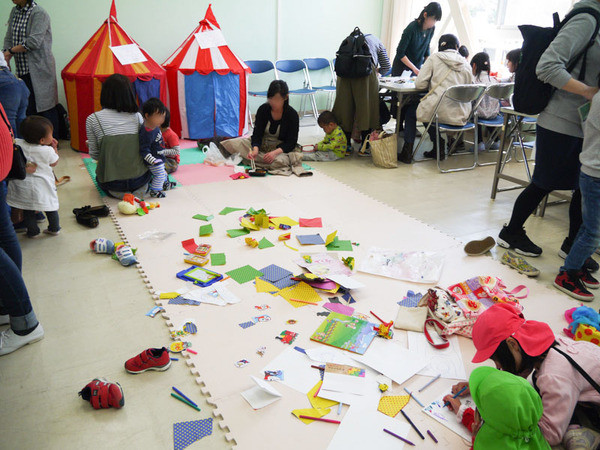 マットの上で自由にお絵かきや折り紙。こういうの子どもは大好きですよね♪
