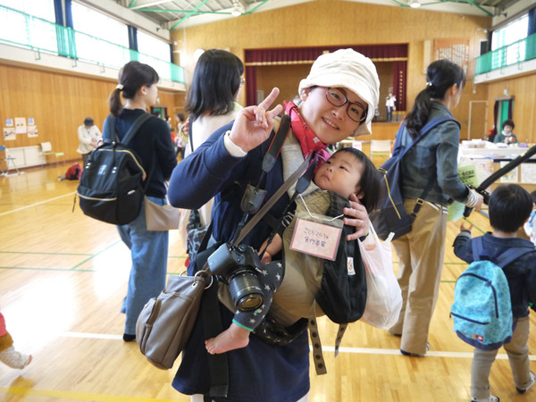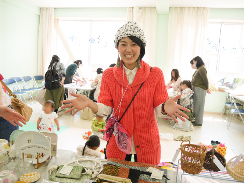 お手製のヘアバンドや抱っこひもの説明をしているのは代表のしょーこさん。