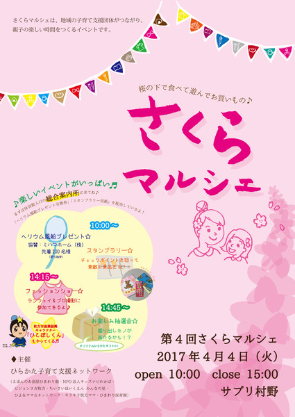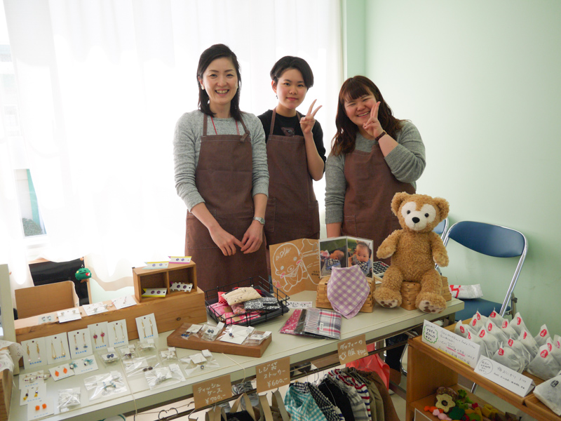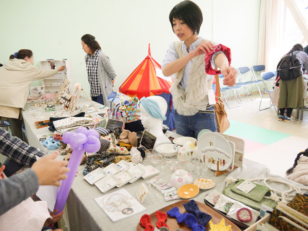 そのよこではママサークルのキラキラ枚方ママによるKiraHiraMarche(キラヒラマルシェ)が開催され、ママたちのハンドメイド作品が並んでいます。
