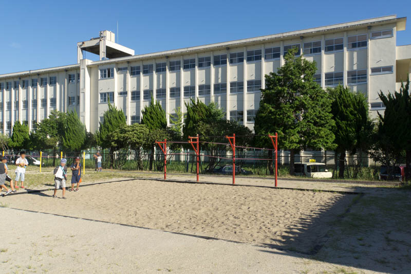 そしてこの意味深な壁。おそらく招提小学校出身の方にはいろんな思い出があるんじゃないでしょうか。