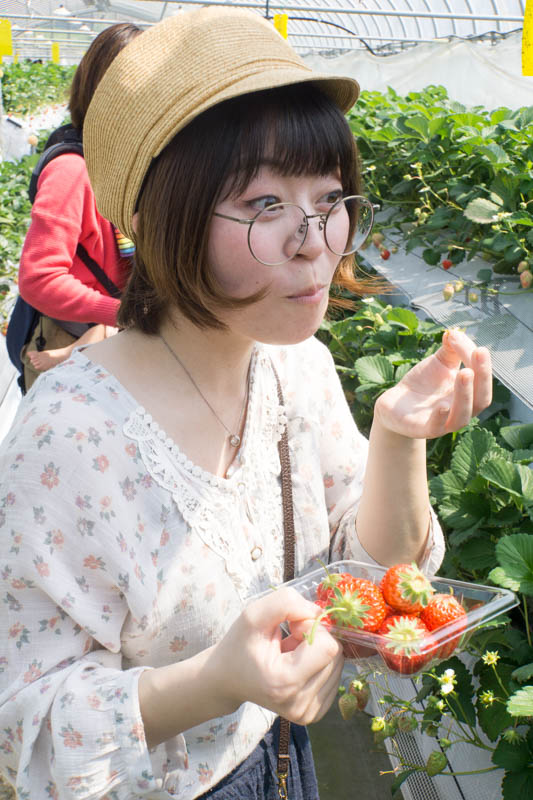 途中でさくらんぼみたいなイチゴを見つけてテンションがあがったり、