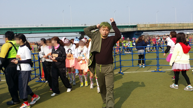とりあえず走りだした緑デブ。なんかみんな自撮り棒とかで写真撮ってて楽しそう。