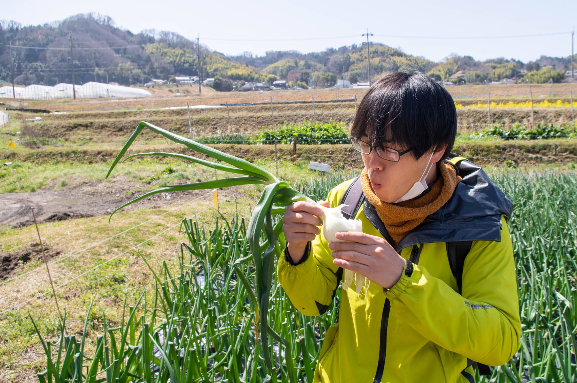やってきたのはこちらの穂谷の玉ねぎ畑。