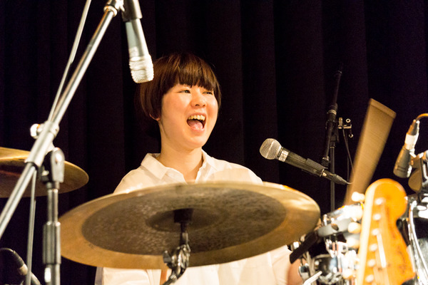 2曲が終わると再びMCに。「私の胸の中の分度器」というお話や、ベースの中原さんが真戸原さんとビルの前で待ち合わせをしていたらアルバイトの面接に来た人だと間違われたというお話などをされていました。