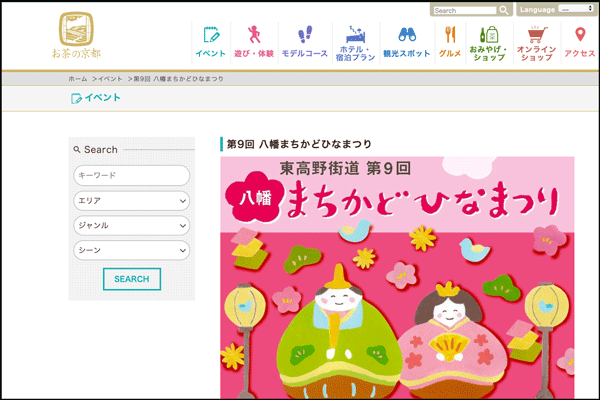 京阪石清水八幡宮駅前の観光案内所から松花堂庭園・美術館まで、東高野街道沿いの社寺施設やお店51ヶ所に趣向を凝らしたお雛様が飾られてるそう。イベント期間中はスタンプラリーも開催。