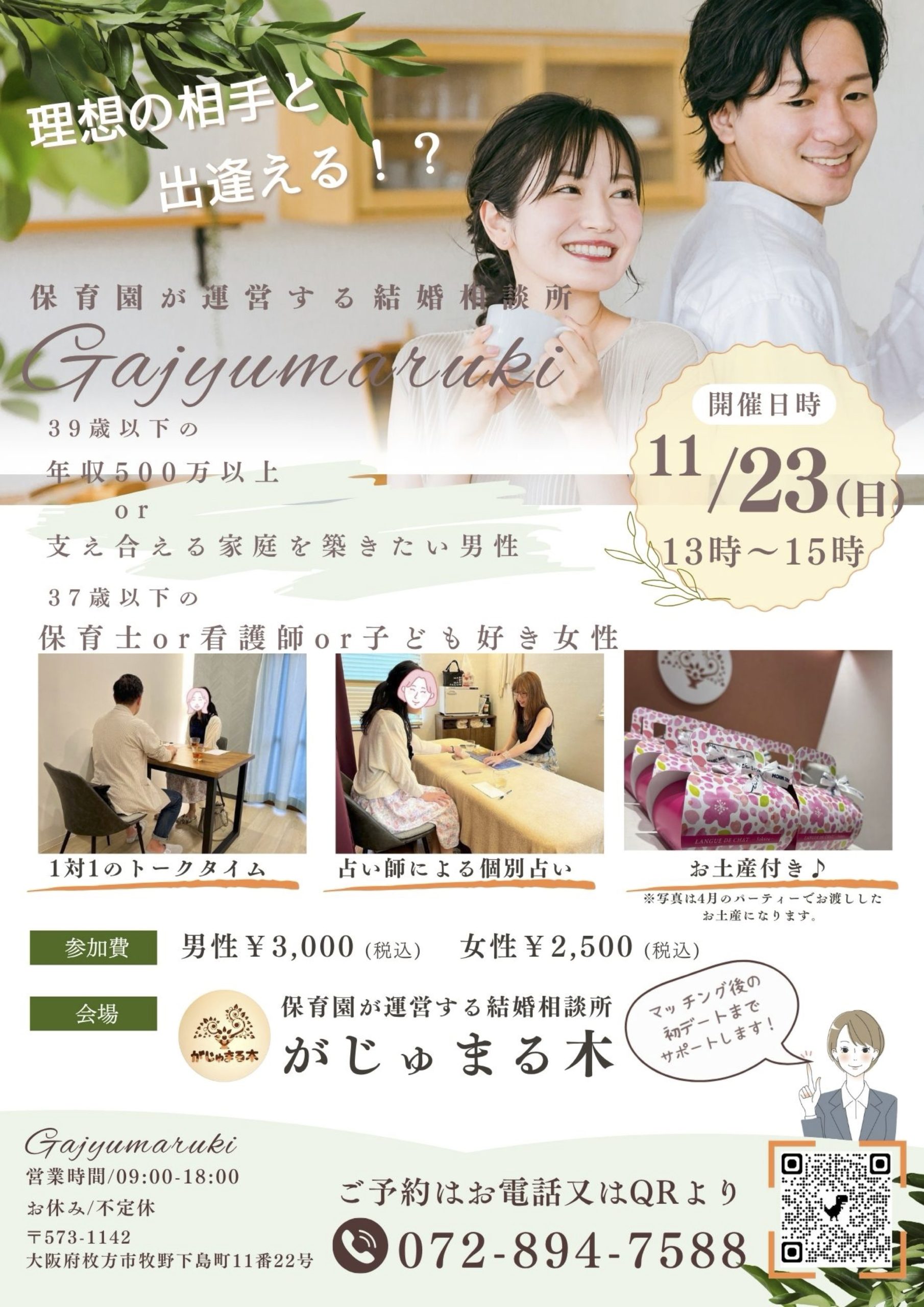 PR 11/23(日)がじゅ婚パーティー 結婚相談所がじゅまる木 投稿日 2025年11月5日 11:45 著者 メグミン カテゴリー PRイベント カテゴリー イベント 完全身元確認型の安心したパーティーになります。異性との会話が苦手という方も安心のカウンセラーのフォロー付き。人気でなかなか予約のとれないひつじちゃんの占いが付いているアットホームなパーティーです。 ▷関連リンク がじゅ婚パーティー 開催2025年11月23日(日) 時間:13時~と15時半~場所結婚相談所がじゅまる木大阪府枚方市牧野下島町11番22号参加費男性:3000円 女性:2500円お問い合わせメール シェア ツイート LINE