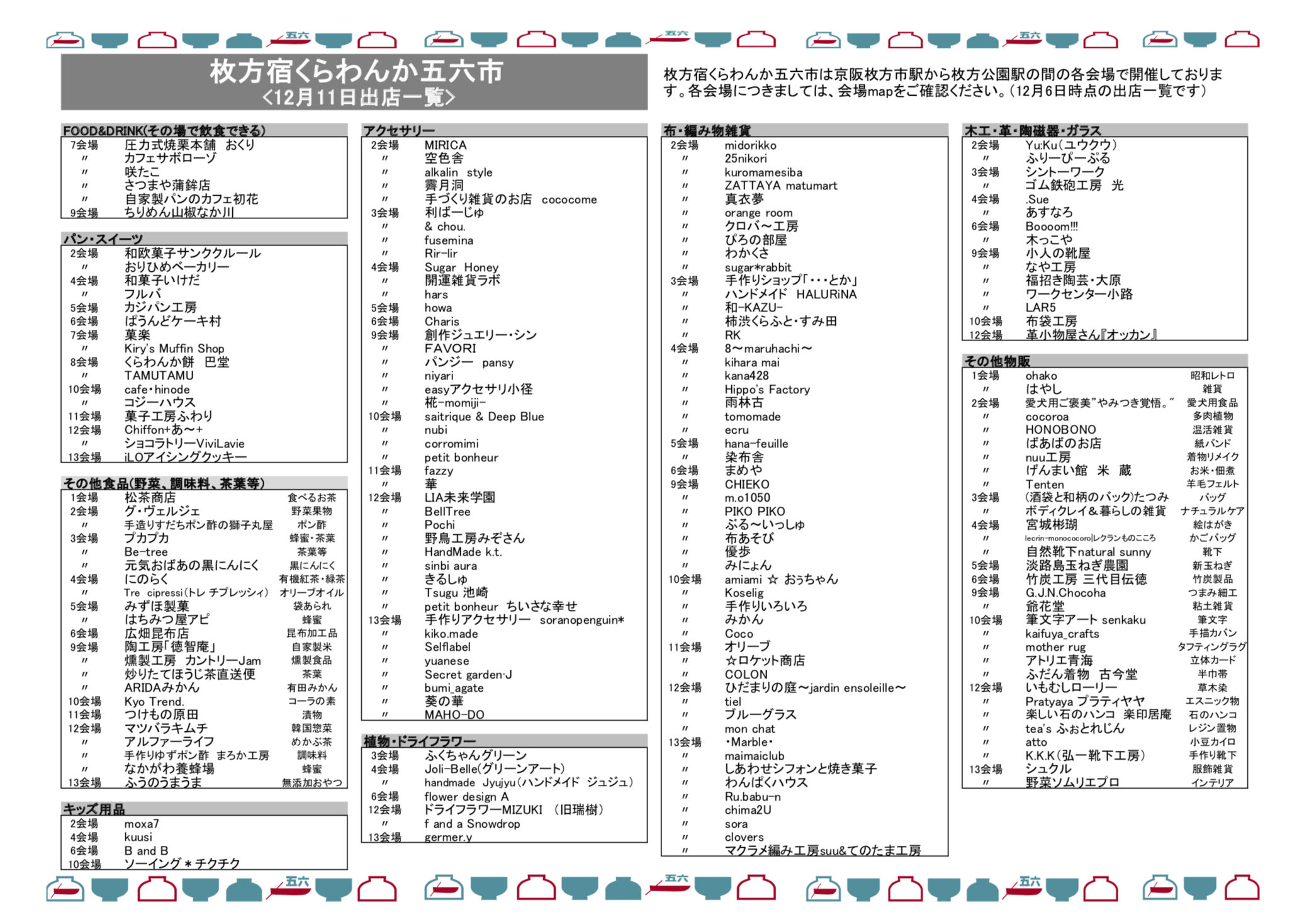 冒頭でご紹介したお店map(出店一覧)と当日のお買い物にご活用ください。