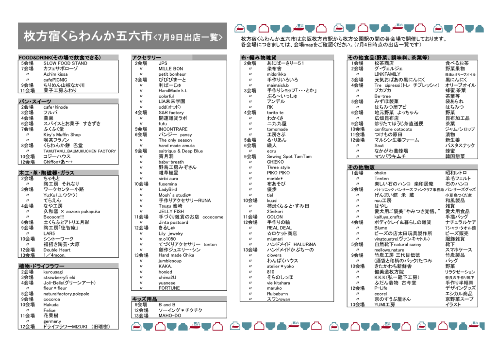 冒頭でご紹介したお店map(出店一覧)と当日のお買い物にご活用ください。