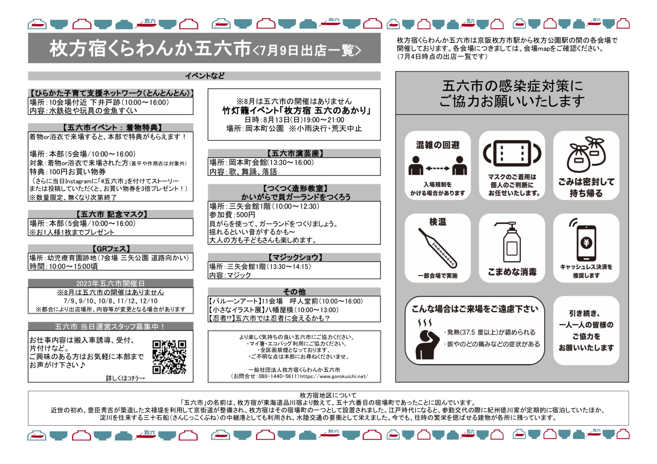 7月9日(日)は枚方宿くらわんか五六市の開催日です!