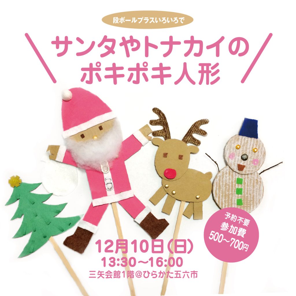 参加費:サンタ700円、その他(トナカイ/ゆきだるま/ツリー)500円