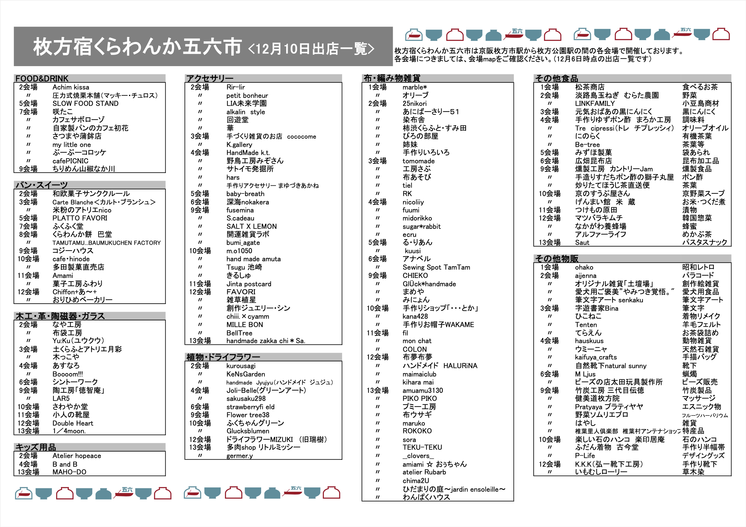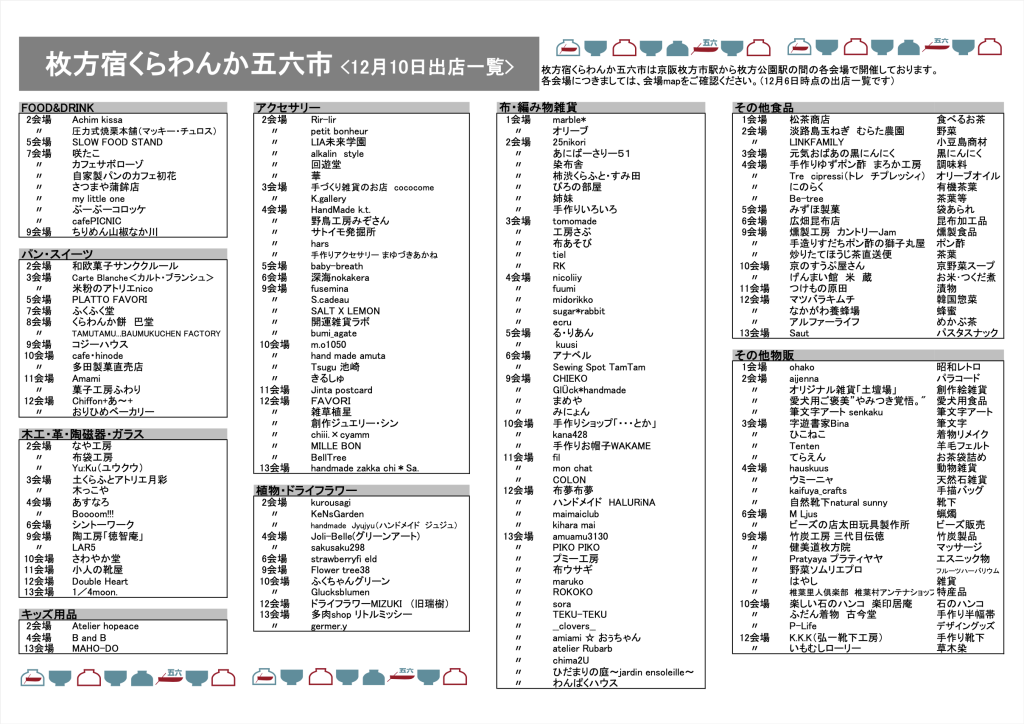 冒頭でご紹介したお店map(出店一覧)と当日のお買い物にご活用ください。
