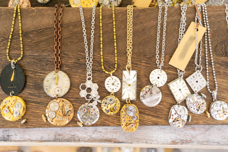 こちらは、時計や懐中時計のパーツを使ったアクセサリーのお店。